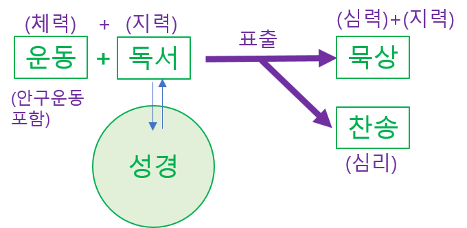 | 체력 | 운동했더니 몸이 좋아 -> 전면 아님 운동하면 뇌에 호르몬 자극을 주어 9분 운동 -> 기분이 좋아지고 열정이 생김 체력이 마음과 지적인 데 영향을 느낌 운동 -> 끈기(매조천의 힘) 전인격에 영향을 미침 |