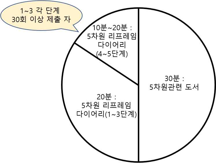 1. 5차원 리프레임다이어리 5단계까지 완성 -> 평생동안 실행